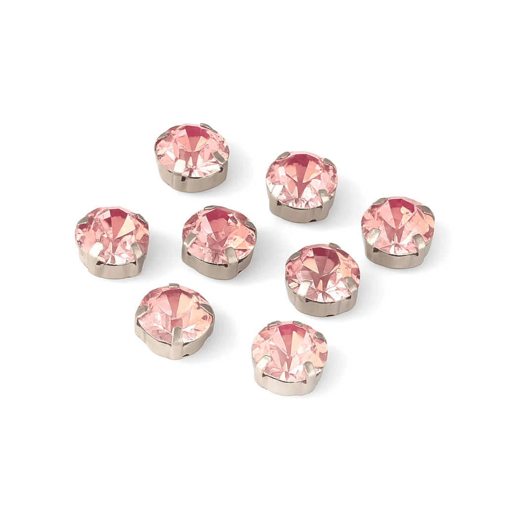 Elevate your creative projects with EIMASS Rose Montee Rhinestones – premium, pre-set crystals mounted in a silver or gold-tone cross-backed setting. These flat-backed rhinestones are expertly secured in a metal casing with cross-channels, making them ideal for sewing, wiring, or beading. The stone itself lies flush with the surface, giving your work a refined, professional finish.